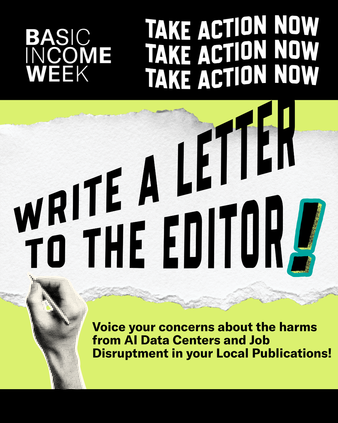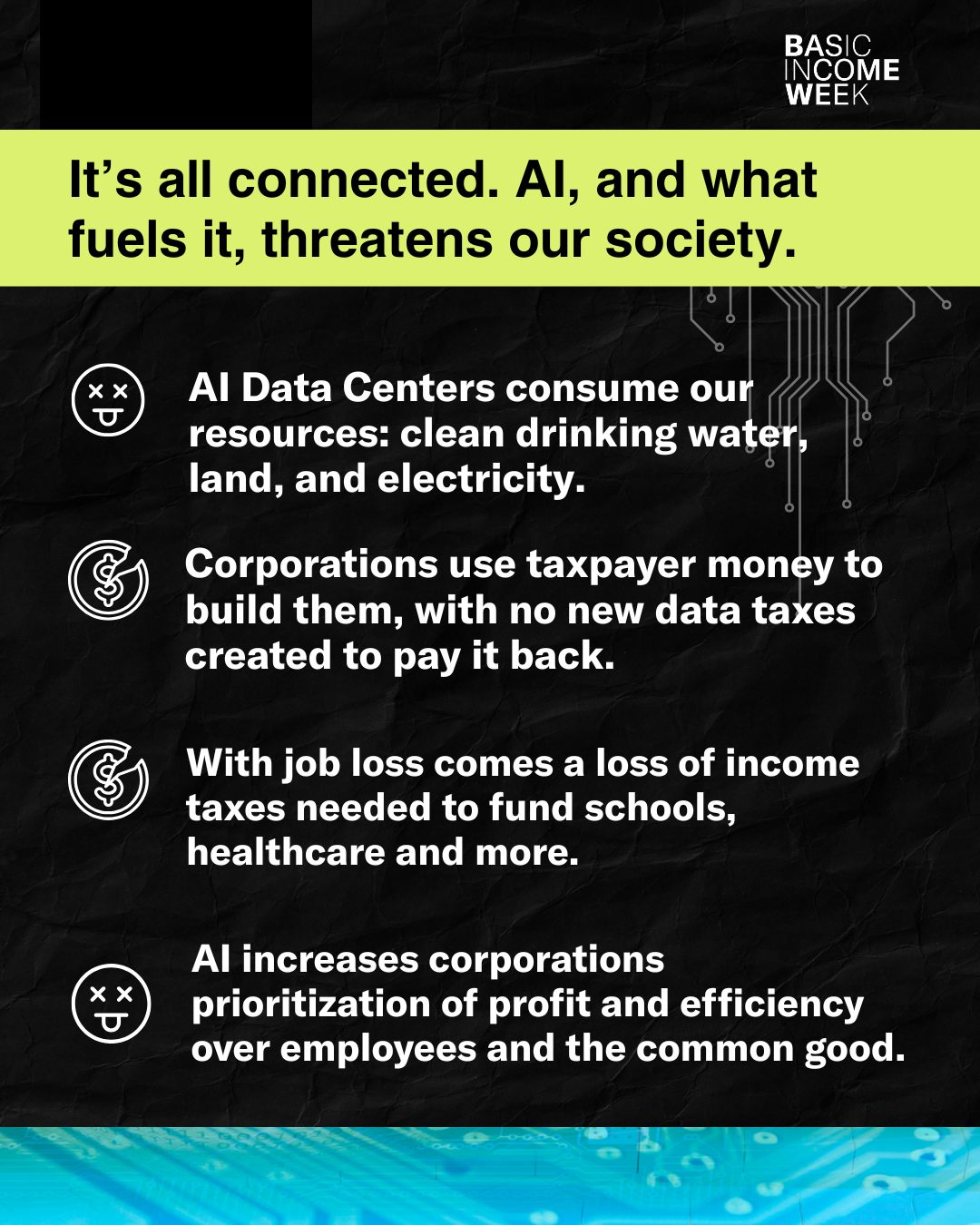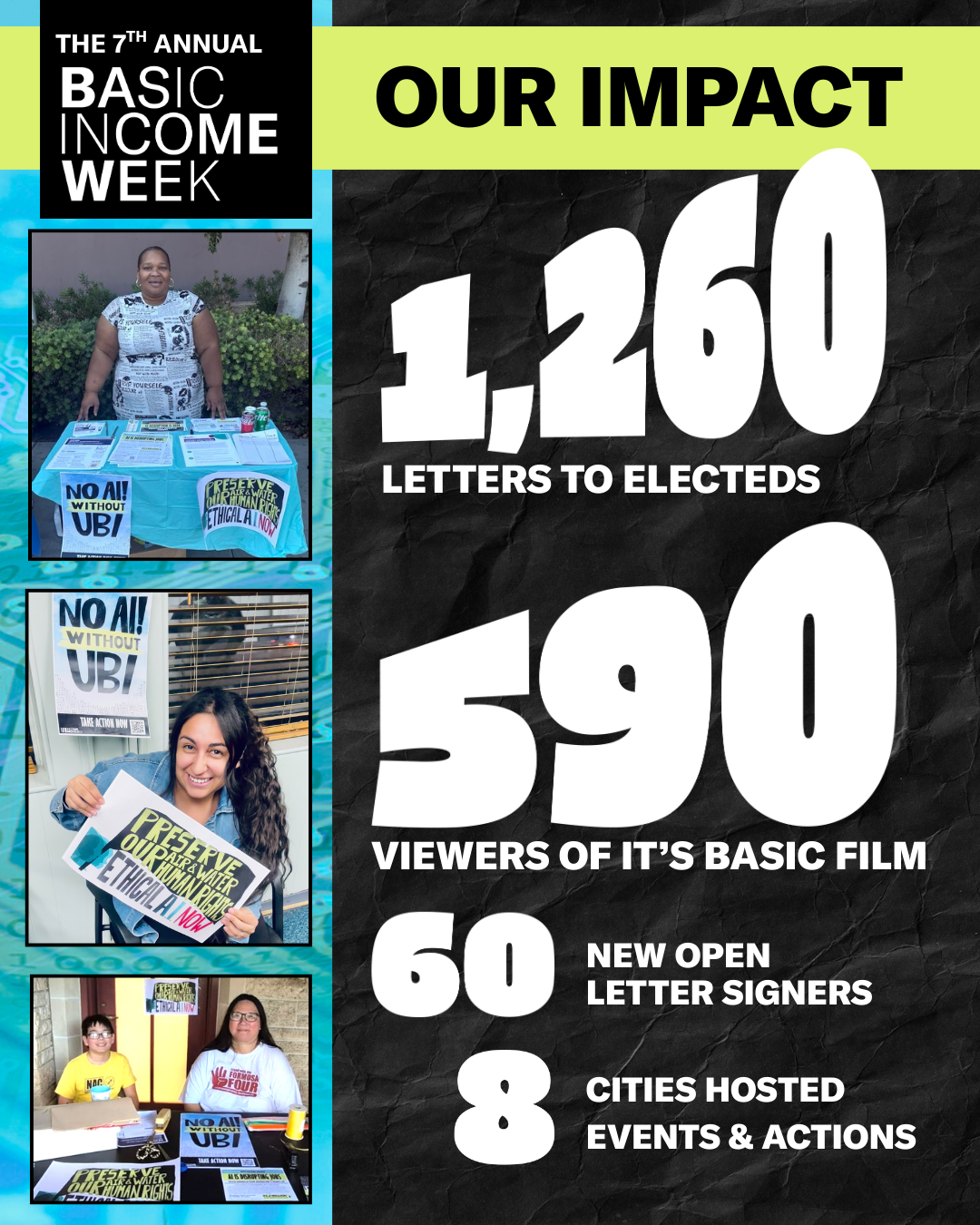 The 7th Annual Basic Income Week of Action— Branded themes are formed for each year, and in this year highlighting AI Disruption was a focus. I created social media graphics, and printed handouts for organizers to use in their advocacy efforts.